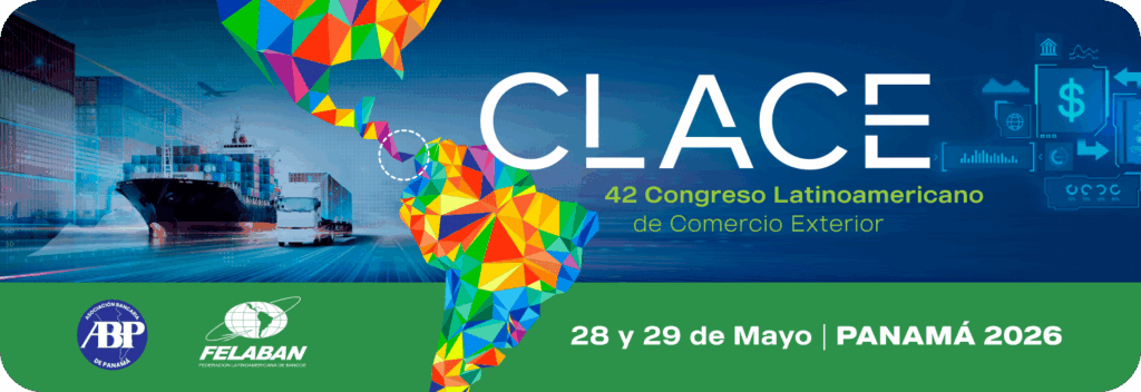 La Federación Latinoamericana de Bancos – FELABAN, conjuntamente con la Asociación Bancaria de Panamá, invitan a los funcionarios bancarios y de entidades financieras y otros interesados, a participar en el 42º Congreso Latinoamericano de Comercio Exterior que tendrá lugar en el Hotel Hyatt Regency en la Ciudad de Panamá el 28 y 29 de mayo de 2026.